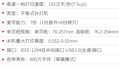 愛普生針式打印機,高速一檔打印速度195漢字/秒,復寫能力7份,單頁紙規(guī)格70-257mm,連續(xù)紙76.2-254mm...