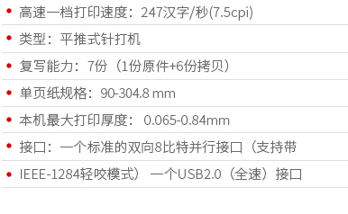 愛普生 LQ-690K ,本機最大打印速度:高速一檔模式下247漢字/秒(7.5cpi), 復寫能力:7份(1份原件+6份拷貝), 單頁紙規格:90-304.8 mm, 本機最大打印厚度: 0.065-0.84mm...